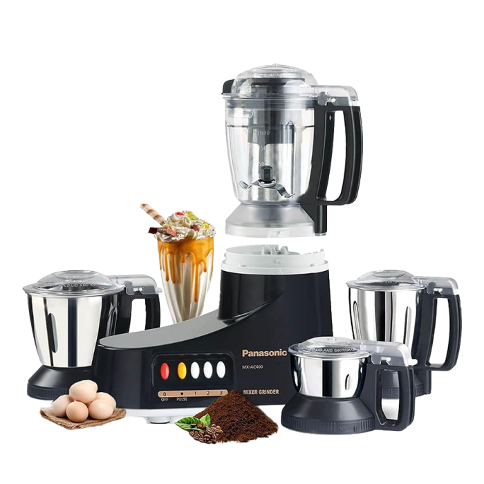 - PANASONIC MX-AC400 550 Watt Juicer Mixer Grinder With 4 Jars (Black)