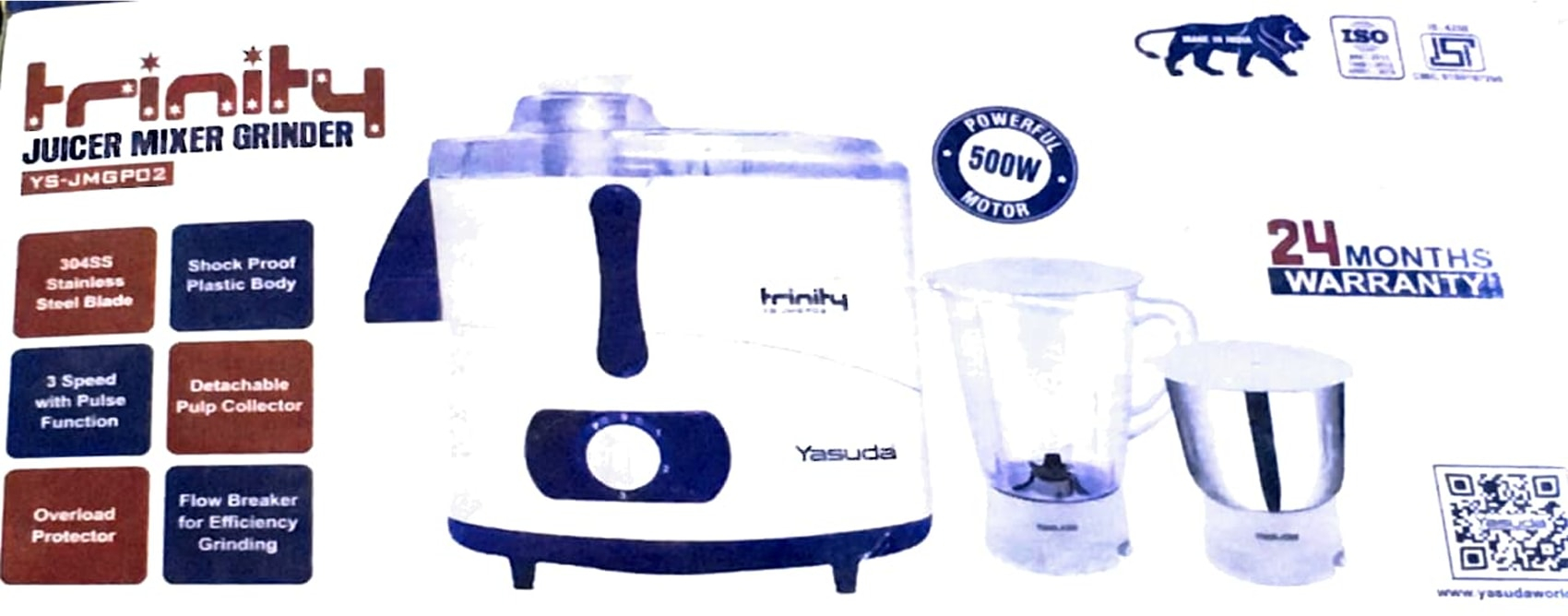 - Yasuda YS-JMGP02 Juicer MIxer Grinder Blue & White - 500Wattage
